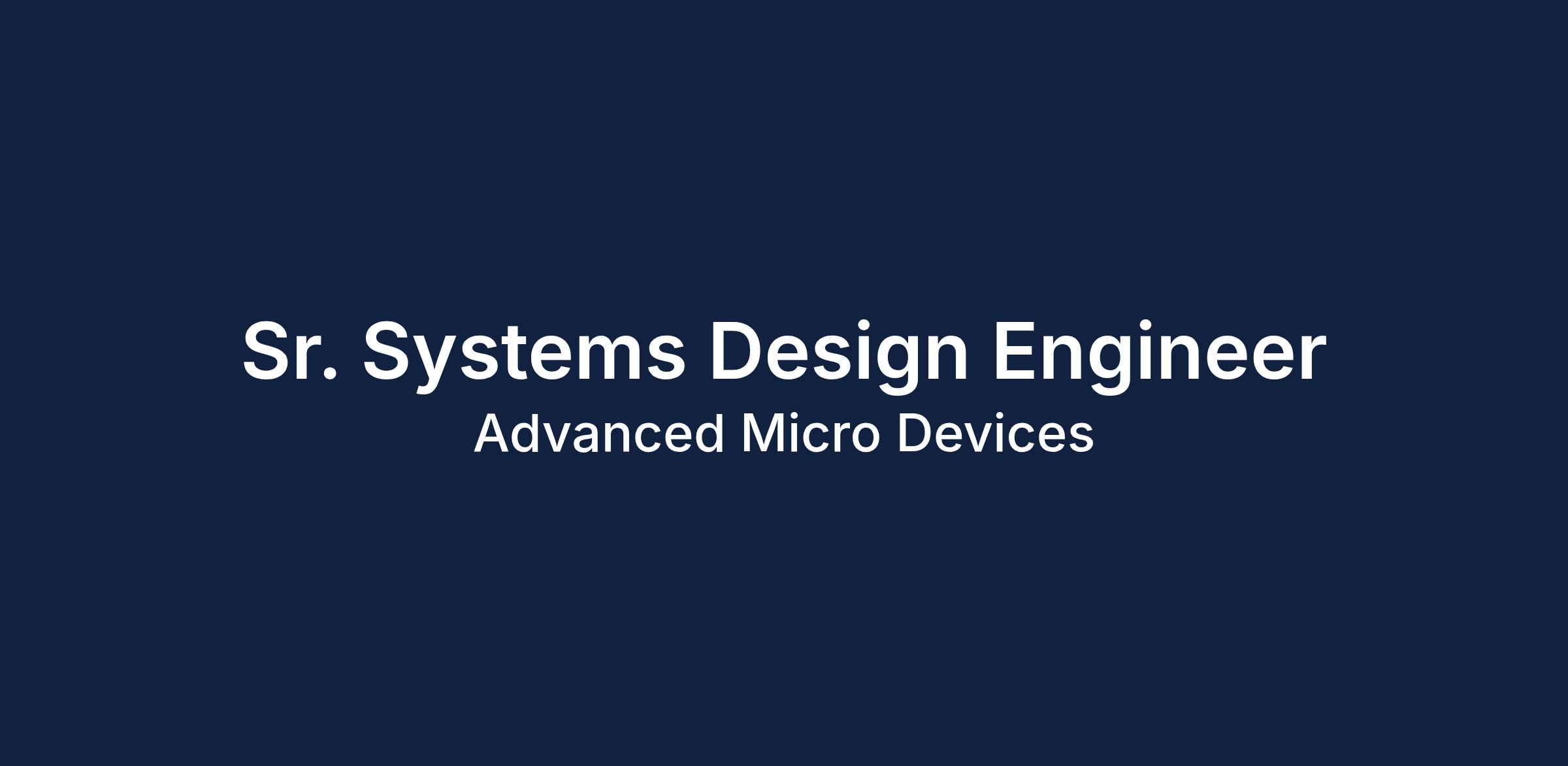 AMD, Inc. is hiring a Sr. Systems Design Engineer to research, design, develop, and test electronic components and systems for semiconductor and related device manufacturing. This role involves defining processes for technical platforms and evaluating system specifications for hardware and software compatibility. An emphasis is placed on providing multi-layered technical expertise for next-generation initiatives.