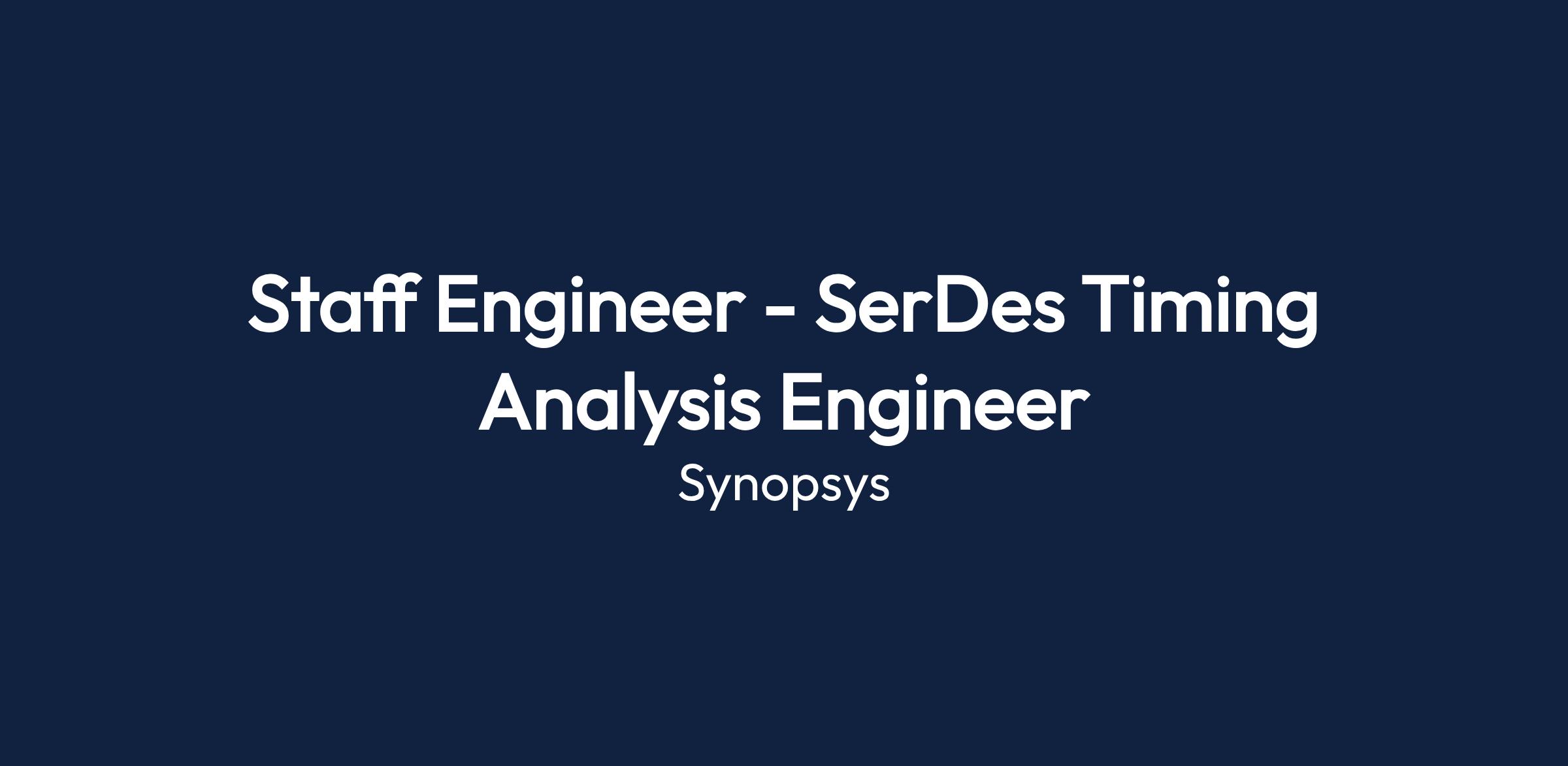 As a Staff Engineer specializing in SerDes Timing Analysis at Synopsys, you will play a pivotal role in designing and analyzing integrated circuit systems specifically focused on high-speed communication interfaces. Your expertise will contribute significantly to the development of innovative products within the analog design team.
