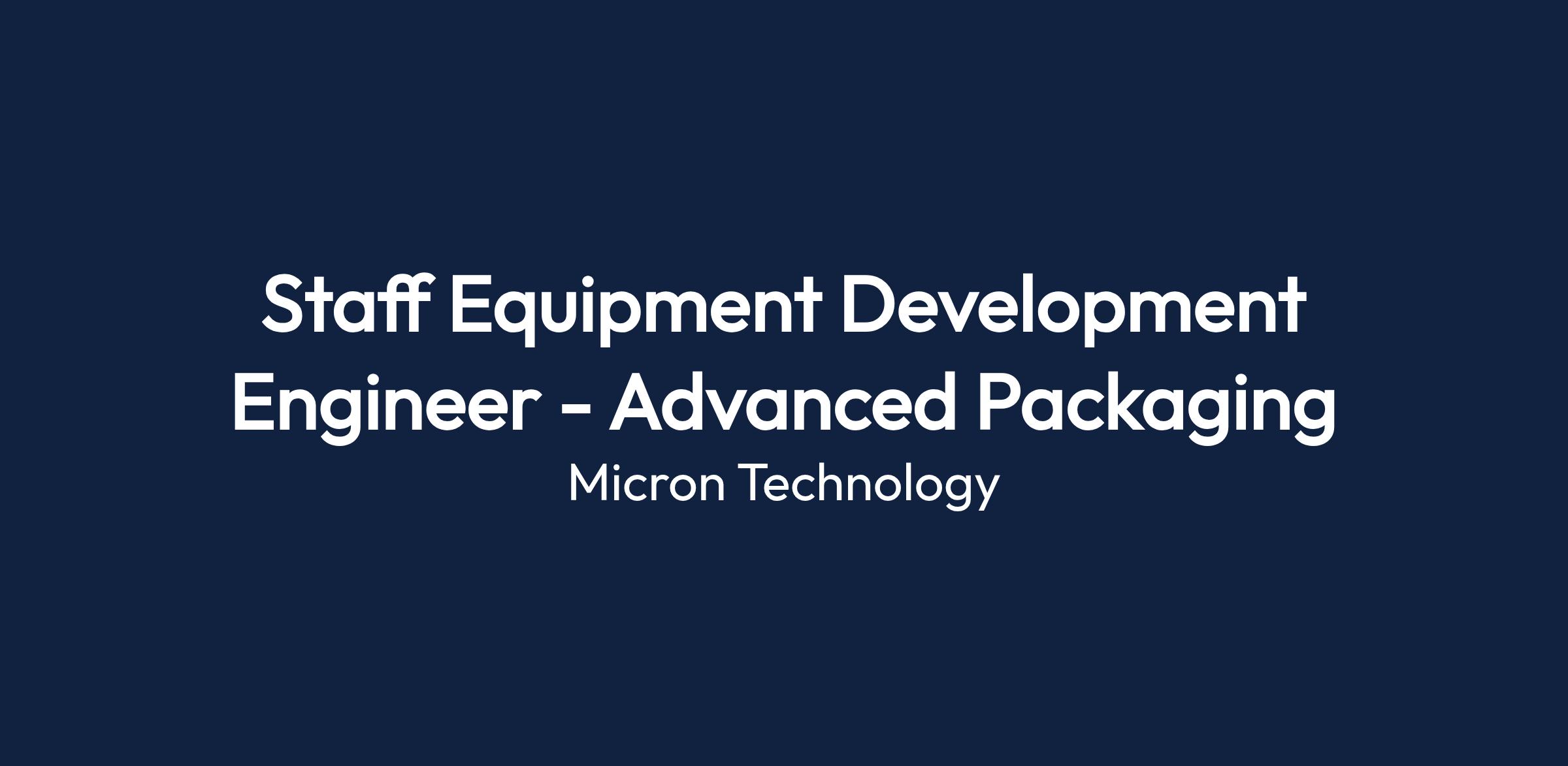 Staff Equipment Development Engineer - Advanced Packaging