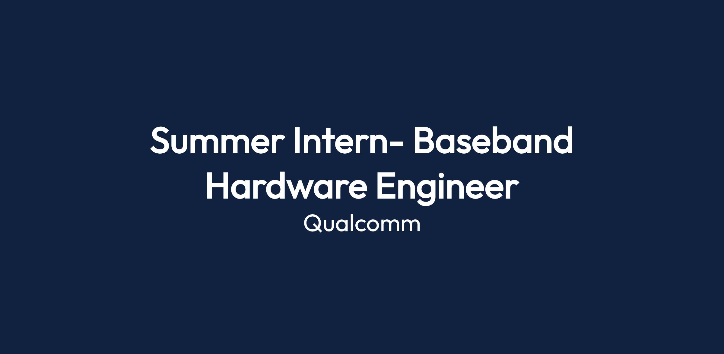 The Summer Intern- Baseband Hardware Engineer will join Qualcomm's Internal Platforms and Solutions team, engaging in high-speed board level designs and ASIC interfaces. The role includes working alongside a variety of engineering disciplines to tackle signal and power integrity issues.