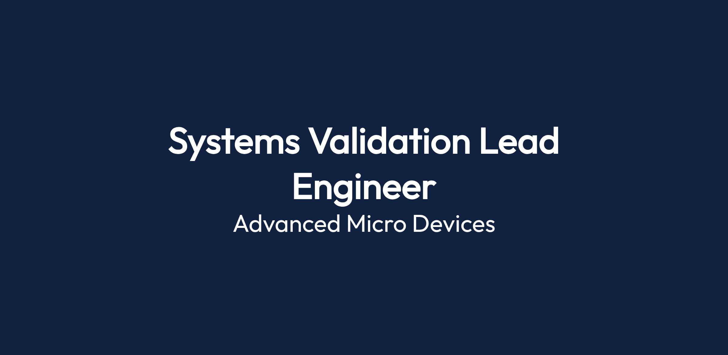 The Systems Validation Lead Engineer at AMD in Hyderabad, India, focuses on the integration and validation of next-generation FPGA families. The position involves both pre-silicon and post-silicon validation processes, requiring collaboration with various engineering teams to resolve complex system-level issues.