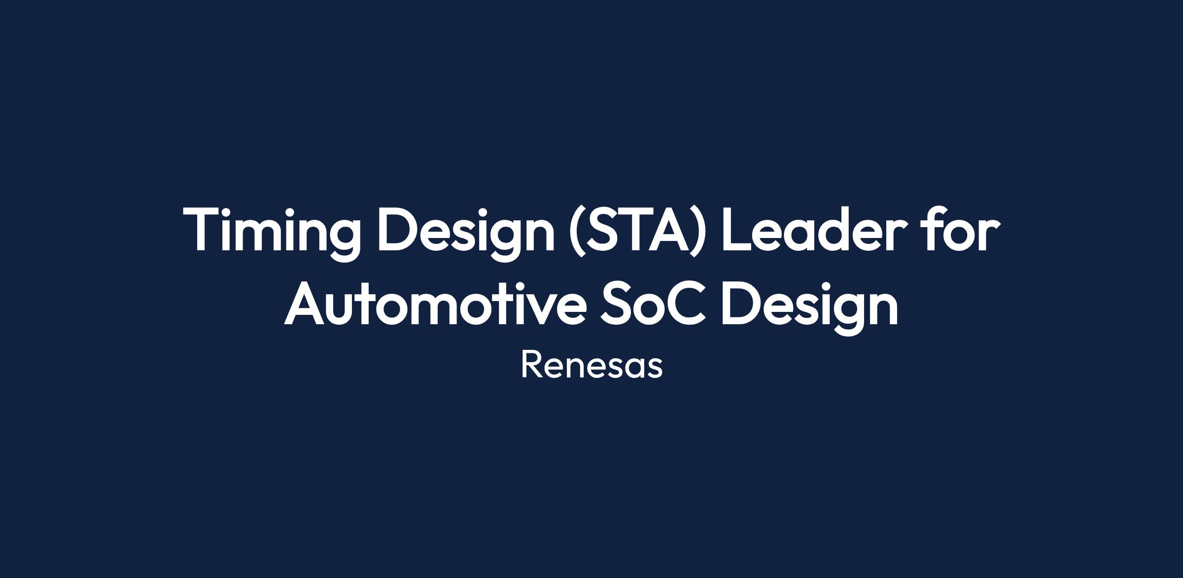 The Timing Design (STA) Leader for Automotive SoC Design at Renesas will be responsible for establishing the overall strategy for SoC timing design, focusing on static timing analysis (STA). This role demands close cooperation with global teams, particularly in India and Vietnam, to integrate various cutting-edge technologies into automotive SoCs.